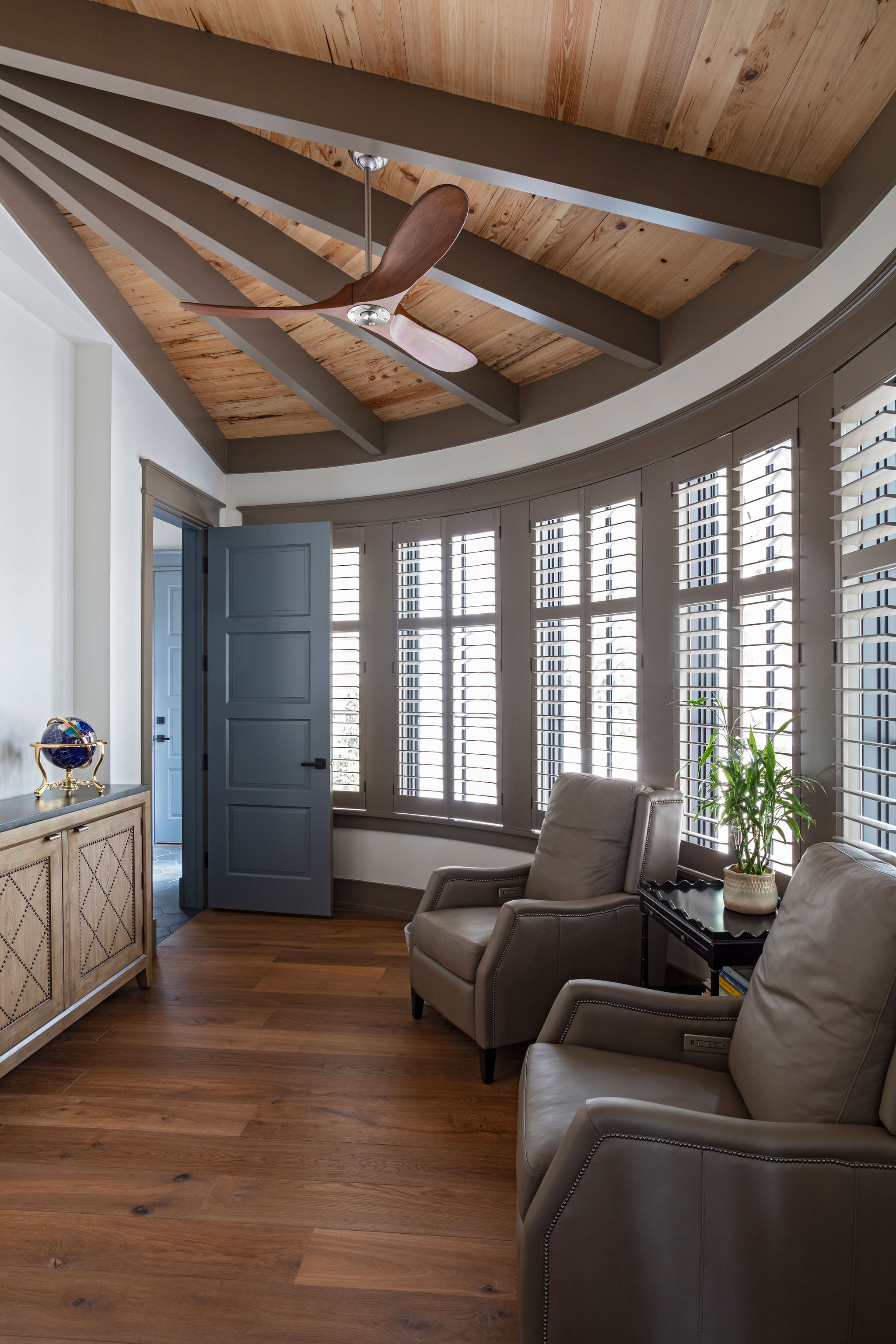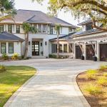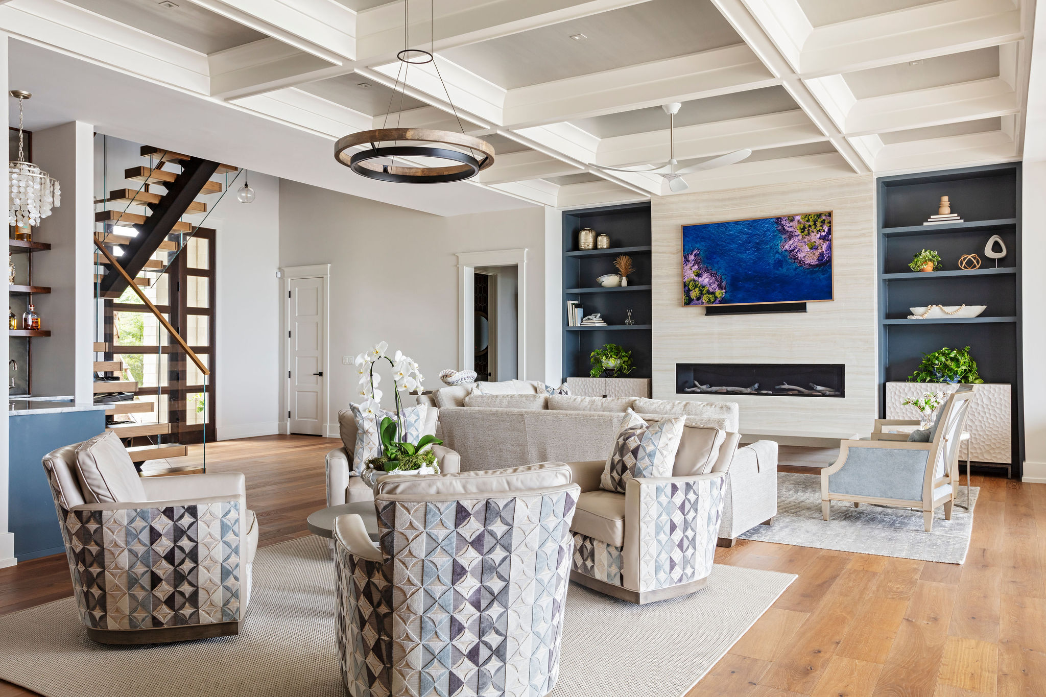 This James Island home features a contemporary interior with beautiful views of the Charleston harbor. A floating staircase and feature wall, a curved wall study, and a Tesla roof are just a few of the unique features of this home.