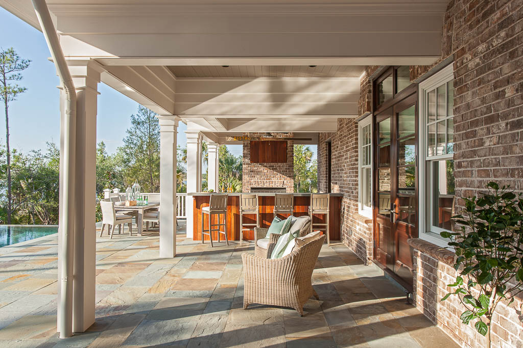 This riverfront home located in the Harbour section of Dunes West was the peaceful setting this couple wanted for their retirement home. With ample outdoor entertaining area and an infinity edge pool overlooking the river, the couple can look forward to relaxing. Inside the home, the bedrooms are generously sized to comfortably accommodate visitors. A separate mini-master wing allows for privacy from the first floor main master bedroom. Beautiful shades of wood can be seen throughout the home - from the mahogany garage doors to the intricate painted arch doorways.